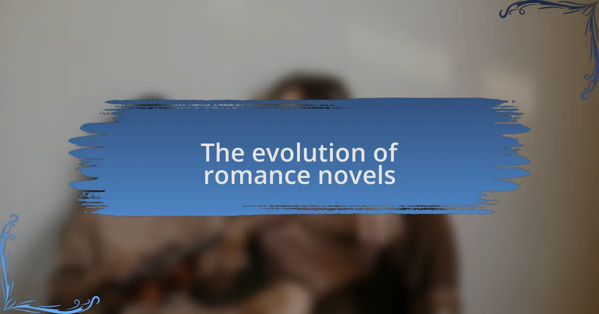 The evolution of romance novels is like tracing a colorful timeline through history. From the early works of Jane Austen, where courtship was the central theme, to contemporary stories that tackle complex social issues, the genre has transformed dramatically. I remember picking up a classic romance and marveling at how manners and social status dictated every interaction, which feels so different from today’s more liberated narratives. Isn’t it interesting how societal changes can shift the way love is portrayed?